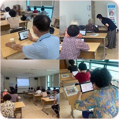 이번 5회기에서는 치매예방체조와, ˚웹-코트를 활용하여 어르신의 인지활동을 통해 치매예방과 더불어 우울감 감소 등의 효과를 가져올 수 있는 활동을 하였습니다. (˚웹-코트란? 웹-인지훈련의 줄임말로, 충북광역치매센터의 인지워크북 '치매 기억담기'를 기반으로 개발된 인터넷 기반 인지 활동프로그램)