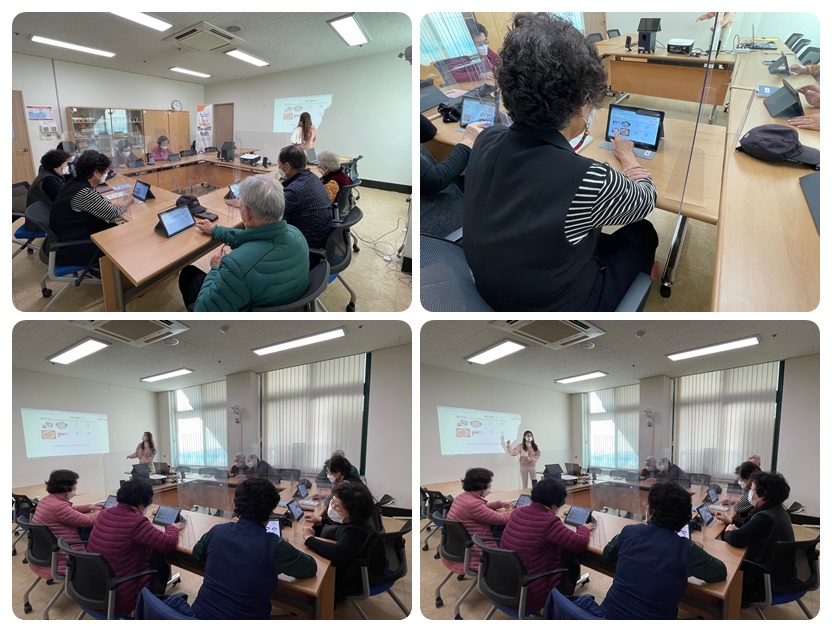 금일 저희 복지관에서는 10:00~11:00 1층 상담실에서 치매예방교실 ‘영(young)리한 두뇌찾기’ 9회기가 진행되었습니다! 지난 회기와 동일하게 치매예방체조와 함께 수업을 시작했습니다. 그리고 지난 회기와 다르게 이번에는 ˚웹-코트 프로그램을 활용하여 어르신의 인지활동을 통해 치매예방과 더불어 우울감 감소 등의 효과를 가져올 수 있는 활동을 하였습니다. (˚웹-코트란? 웹-인지훈련의 줄임말로, 충북광역치매센터의 인지워크북 '치매 愛 기억담기'를 기반으로 개발된 인터넷 기반 인지 활동프로그램) 태블릿PC 활용 방법 안내와 웹코트 프로그램 중 장년코스(1세트~3세트)를 진행하여 문제해결능력, 집중력, 기억력 등을 발달 시킬 수 있는 인지 활동을 진행하였습니다. 스마트 기기를 활용하는 활동이라 기기활용에 어려움을 겪었지만, 금방 적응하셔서 어르신들끼리 서로 도우며 준비된 문제들을 풀 수 있었습니다. 남은 회기도 웹코트 프로그램을 통하여 어르신들의 인지능력이 발달되는 유익한 시간이 되었으면 좋겠습니다. 참여해주신 어르신들 모두 감사드립니다~!