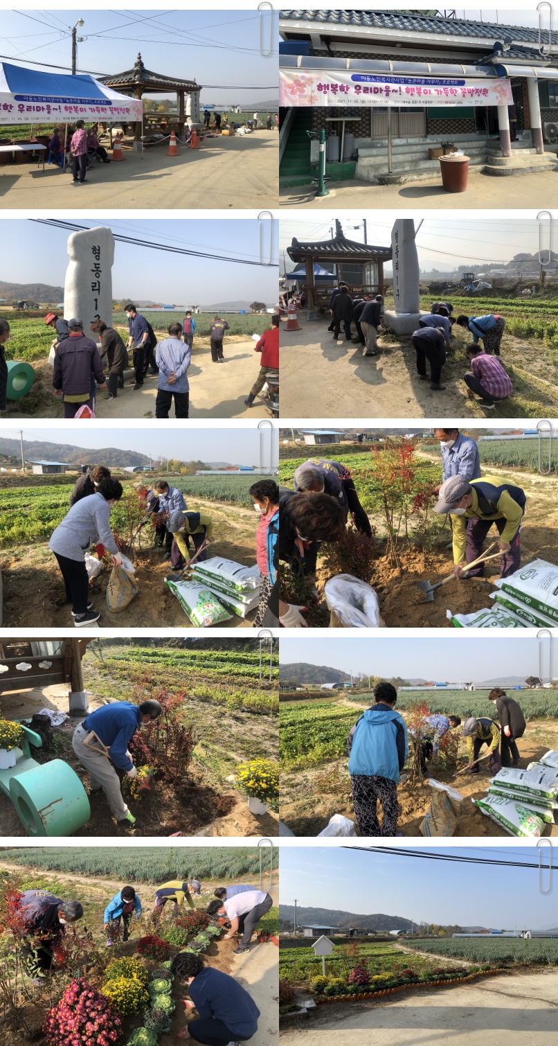 저희 복지관에서는 11월 5일(금) 13:00~16:00까지 이동노인복지관사업 일환으로 농촌마을 가꾸기 프로젝트를 진행하였습니다~! 이번 프로젝트는 형동1리 마을로 선정하여 마을회관 앞 꽃밭정원을 만드는 것으로 어르신들과 협의하여 진행하게 되었습니다! 해당 마을 어르신들의 적극적인 참여와 주제 선정부터 장소 선정까지~~~모두 어르신들과 함께 논의하여 진행하였습니다~! 꽃밭정원 관리부터 유지보수까지 모두 해당 마을 주민들과 어르신들이 직접 하시며, 마을을 위해 모두 노력하시기로 하였습니다^^ 이번 농촌마을 가꾸기 프로젝트를 위해 큰 도움을 주신 마을이장님과 노인회장님~!!! 너무 감사드리며, 함께 참여한 직원분들 모두 수고많으셨습니다~!^^