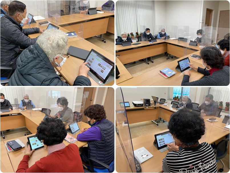 금일 저희 복지관에서는 10:00~11:00 1층 상담실에서 치매예방교실 ‘영(young)리한 두뇌찾기’ 12회기가 진행되었습니다! 이번에도 치매예방체조와 더불어 ˚웹-코트 프로그램을 활용하여 어르신의 인지 활동을 강화할 수 있는 활동 등을 하였습니다. 이번에는 웹코트의 백세코스(1세트~3세트)를 진행하였으며 분류화, 순서화, 일상생활 능력 증진 등에 도움을 줄 수 있는 지폐 금액 더하여 계산해보기, 상황 순서 나열하기, 물건 분류해보기 등 내용을 태블릿PC를 활용하여 웹코트를 실시하였습니다. 처음 프로그램을 시행하였을 때와 비교하여 적응된 모습으로 알려드리지 않아도 스스로 웹코트 프로그램을 활용할 정도로 적극적으로 참여해주셨습니다! 얼마 남지 않은 회기도 적응된 모습으로 잘 참여하셔서 인지능력 강화에 도움이 되는 시간이 되었으면 좋겠습니다. 참여해주신 어르신들 모두 감사드립니다!!
