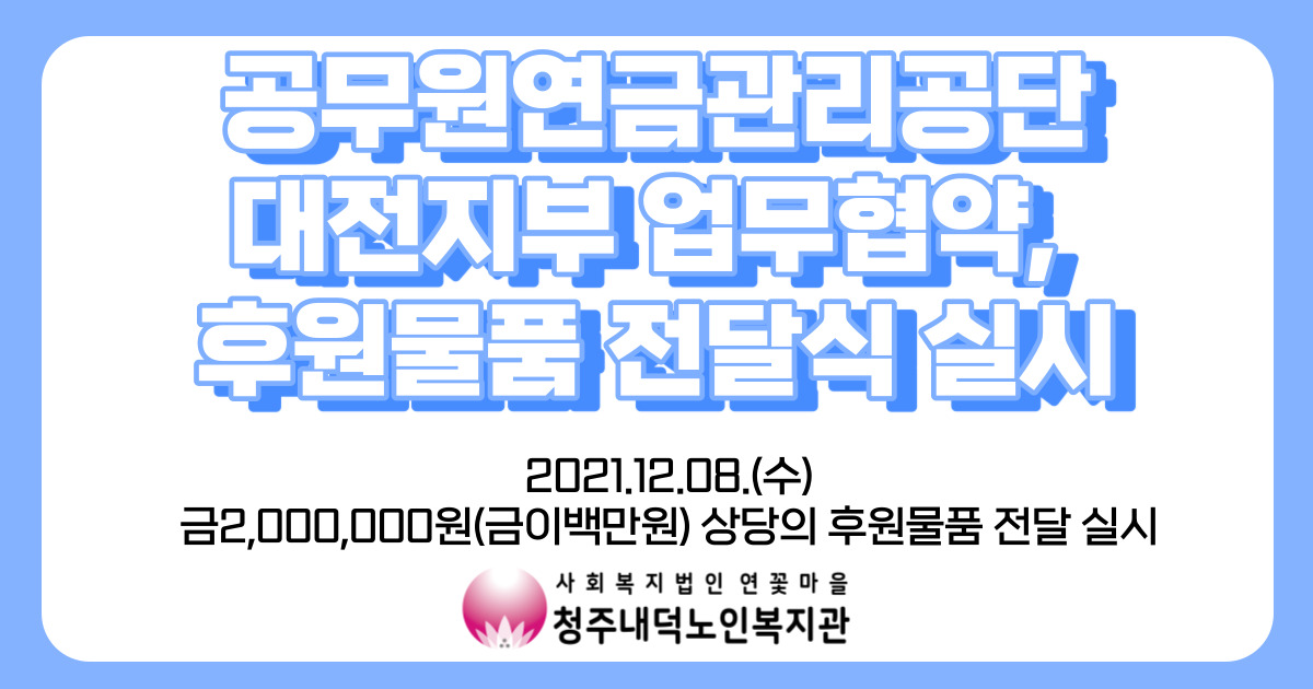 이번 협약을 통해 은퇴공무원 사회공헌활동지원과 지역사회 노인복지 증진을 위한 재능기부, 지역 내 복지사업홍보 활동 및 정보공유 활동을 진행하기로 하였습니다!! 또, 이날 온정키트를 구성하여 청원구 내 거주하시는 100명의 취약계층 어르신들에게 전달하였습니다!!
