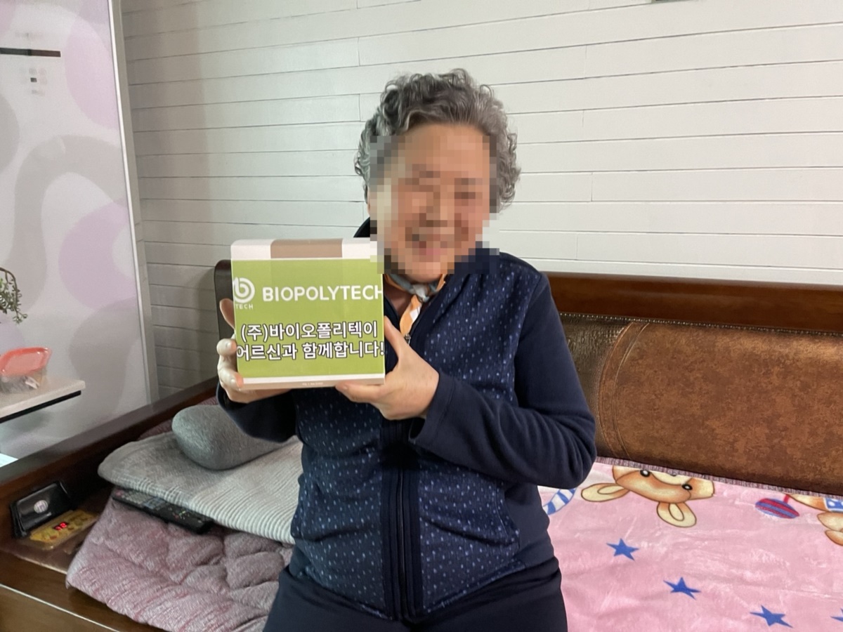 (주)바이오폴리텍은 키토산, 콜라겐 등이 함유된 기능성 화장품이나 식품들을 만드는 회사로 이전에도 어르신들의 건강을 위해 많은 후원물품을 제공해주셨습니다.