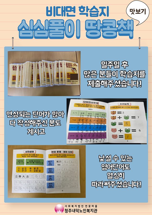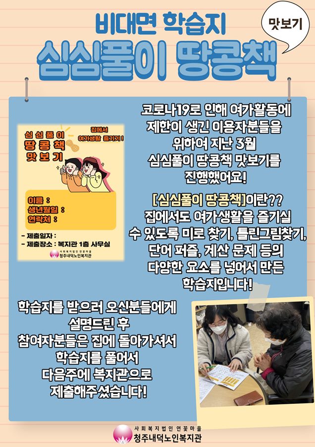 늘벗골이야기 > 복지관소식 - 비대면 학습지 심심풀이 땅콩책 맛보기 운영
