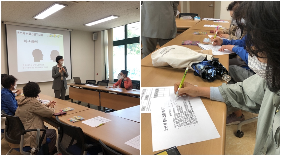 5월 9일(월) 14시, 너나들이(방문상담) 선배시민 자원봉사단은 소양교육을 실시 하였습니다. 동년배 상담 전문가로 활동 할 수 있도록 노년기 발달 과업을 이해하고 상담자의 기본 태도와 대화법을 익혀 상담자로서 역량 강화 시키고자 합니다. 이번 교육을 통해 효과적인 의사소통을 위한 대화법 및 말과 대화의 다른점 등을 이해할 수 있길 바랍니다.