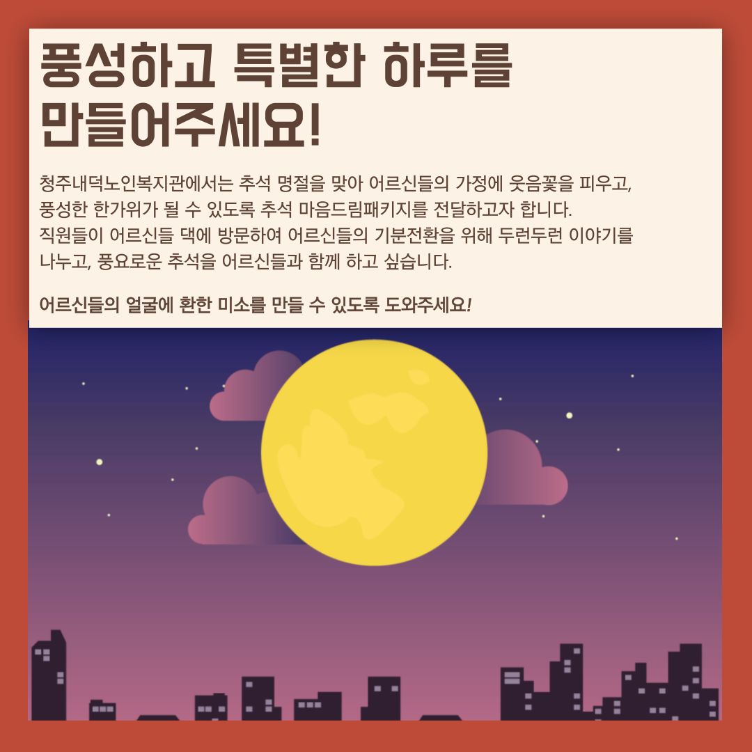 | 어르신들의 얼굴을 환하게 밝혀주는 보름달이 되어주세요!! | |||
