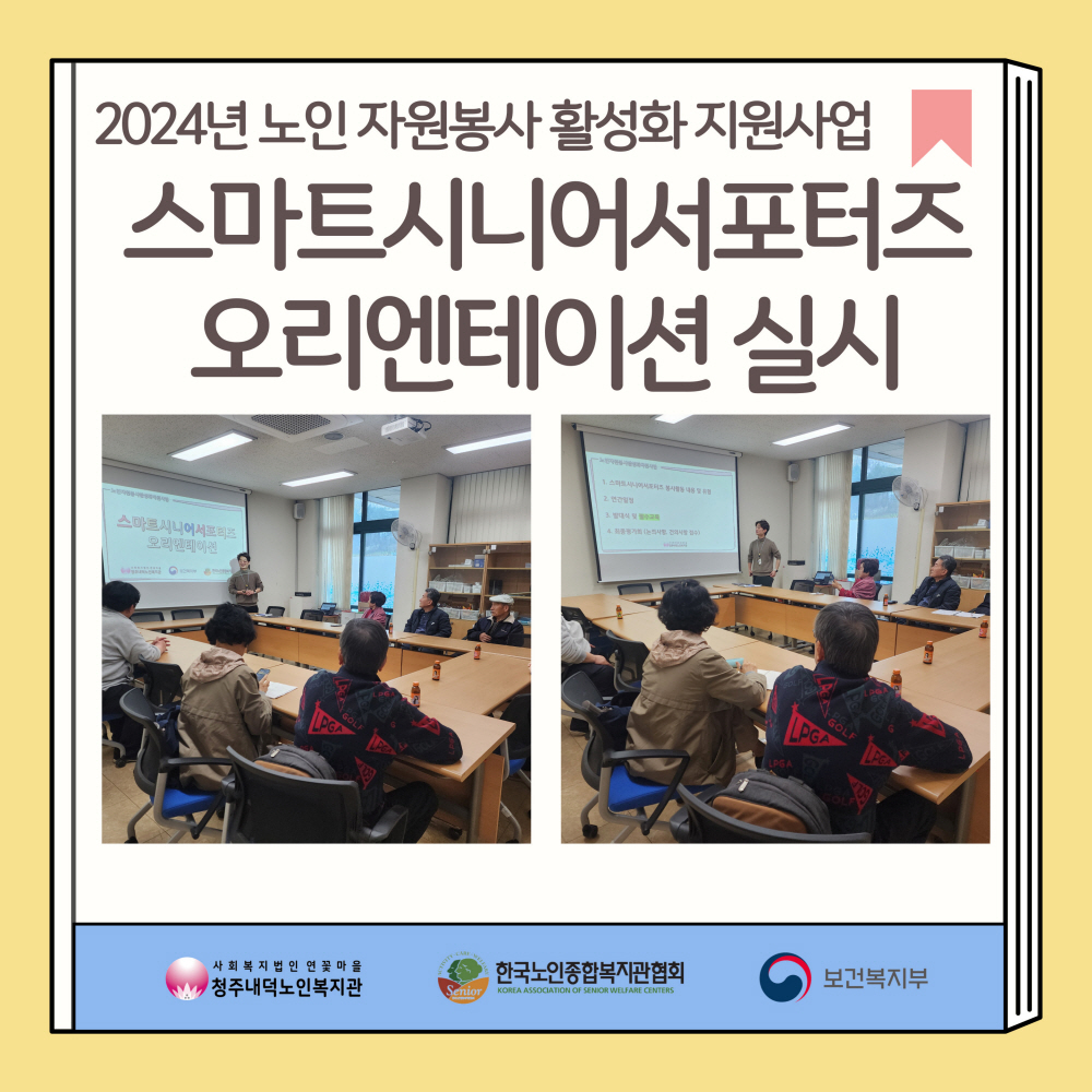 | 2024년 노인 자원봉사 활성화 지원사업 스마트시니어서포터즈 오리엔테이션 실시 | |||