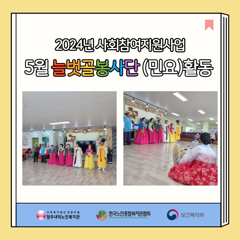 | 2024년 사회참여지원사업 늘벗골봉사단 (민요) 5월 공연활동 | |||