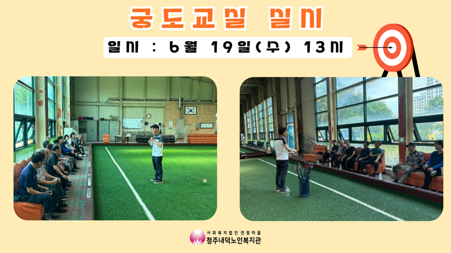 강사님의 소개를 시작으로 궁도에 대한 소개를 하셨고, 앞으로 어떤 수업을 할지에 대해 설명을 해주셨습니다 궁도와 양궁의 다른 점에 대해서도 소개해주셔서 궁도를 처음 접한 분들도 궁도에 대해 더 이해하실 수 있었습니다. 그리고 마지막에는 실제 활을 잡아보고 그물로 만든 과녁에 자유롭게 활을 쏘면서 체험도 해보았습니다 가만히 있어도 땀이 나는 더운 날씨에도 굴하지 않으시고 강사님이 놀라실 정도로 앞으로의 수업에서는 활을 쏘는 정확한 자세 등을 익힐 예정이고 후반부에는 직접 국궁장에서 체험도 해보실 예정입니다. 수강생분들의 나날이 늘어갈 국궁 실력을 기대해주세요~!