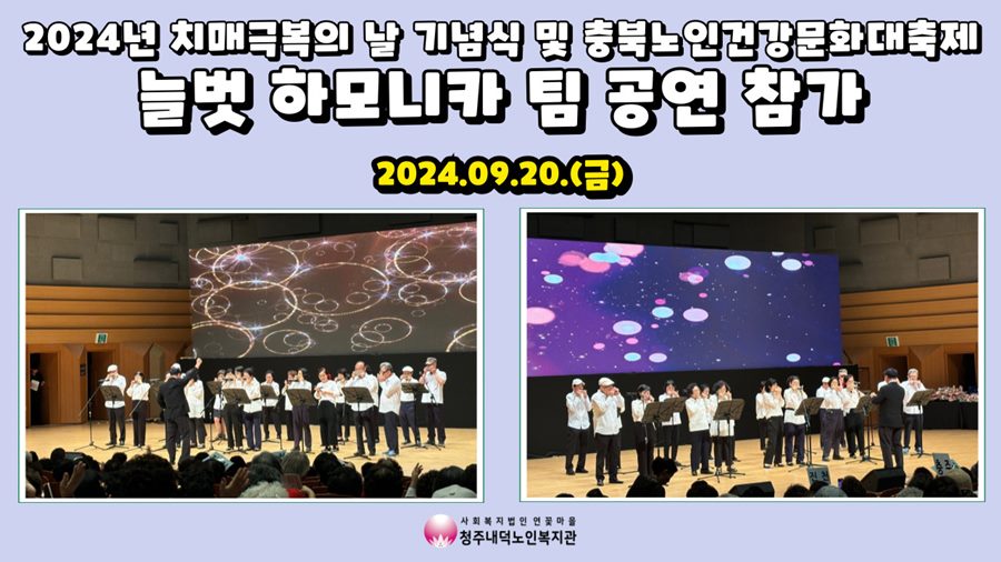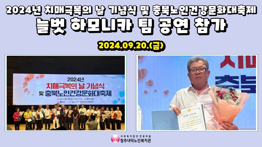 | 2024년 치매극복의날 기념식 및 충북노인건강문화대축제 늘벗 하모니카 팀 공연 참가 | |||