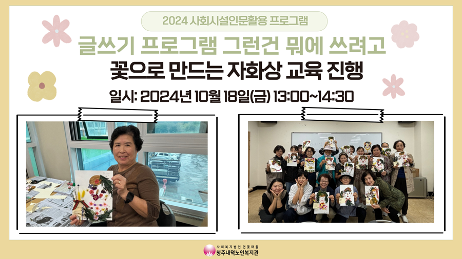 | 2024 사회시설활용 인문프로그램 글쓰기프로그램 꽃으로 만든 자화상 교육 진행 | |||