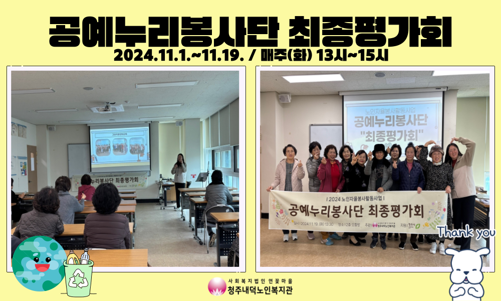 11월 활동을 끝으로 11월19일(화) 노인자율봉사활동사업인 공예누리봉사단 최종평가회가 진행되었습니다.