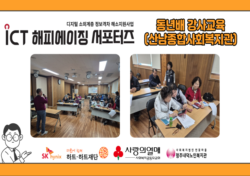 2025년 10월 29일(수) 30일(목) 양일 ICT해피에이징 서포터즈 동년배 강사활동이 산남종합사회복지관에서 진행되었습니다.