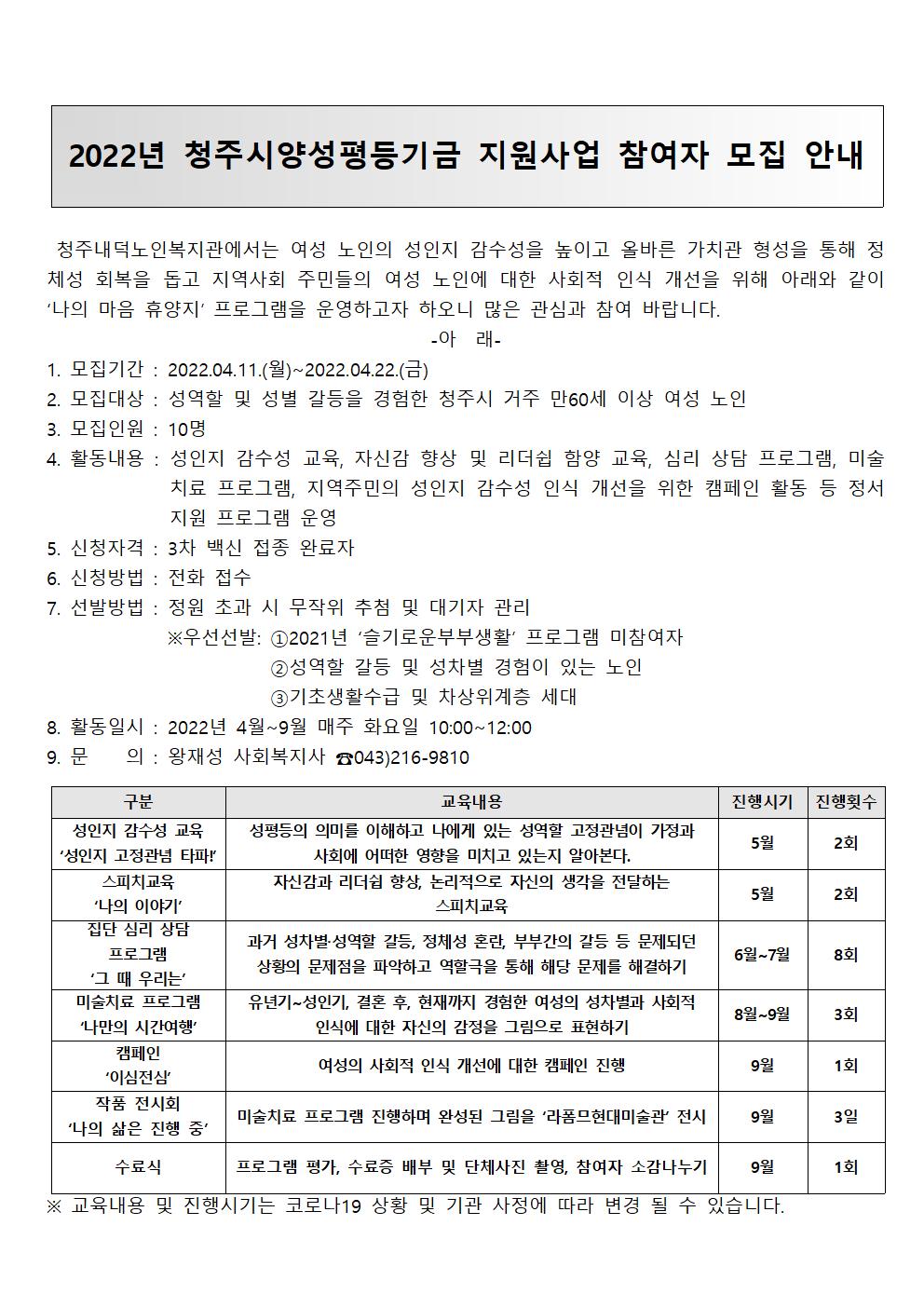 | 2022년 청주시양성평등기금사업 참여자 모집 | |||