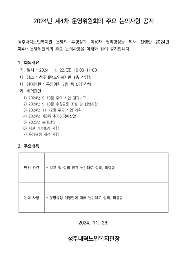 | 2024년 제4차 운영위원회 결과 공고 | |||