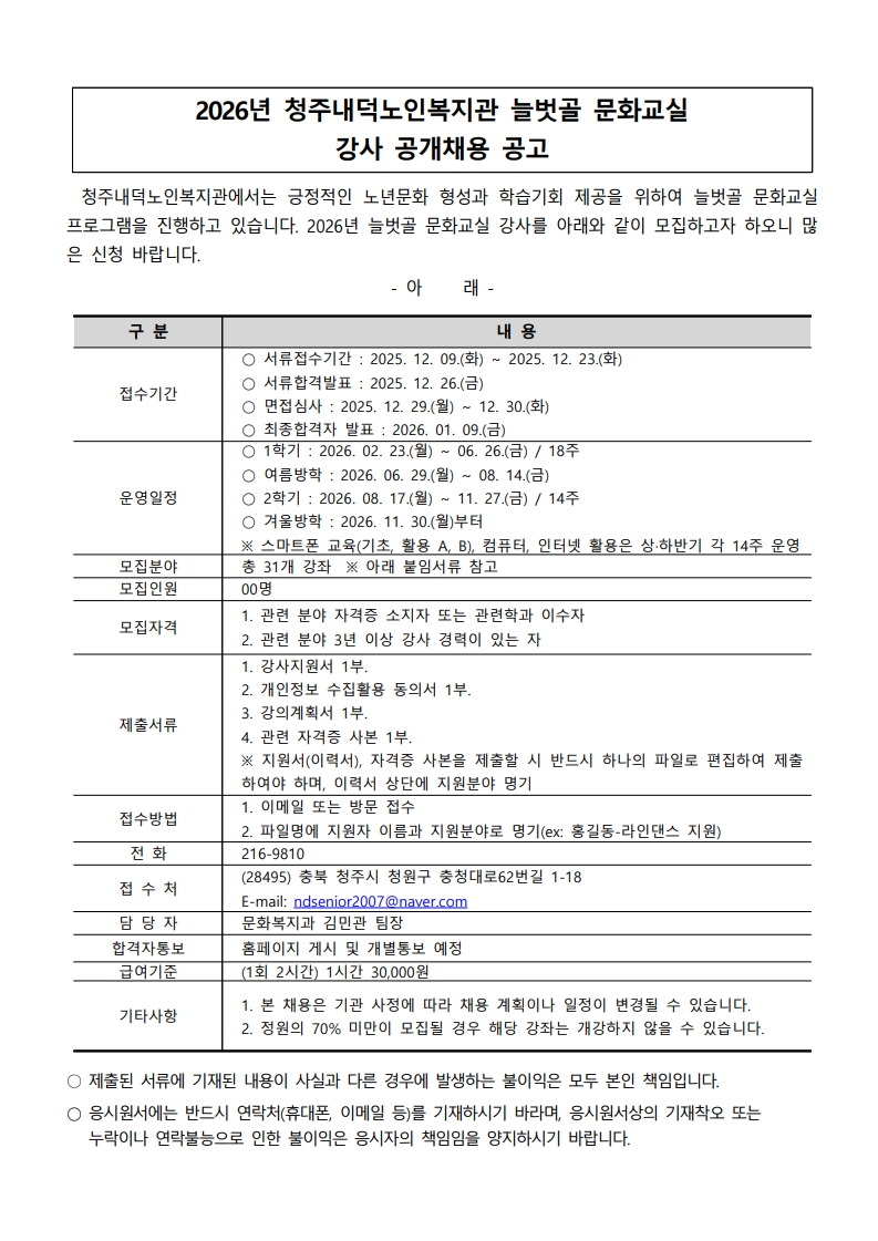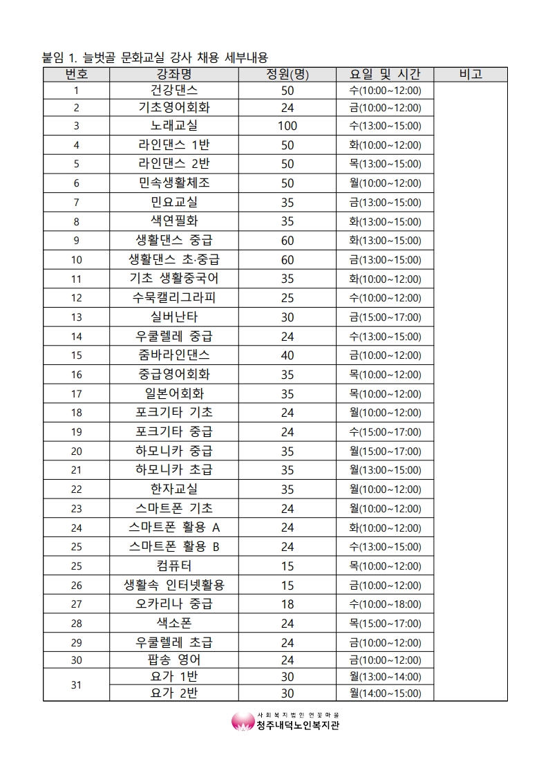 | 2026년 늘벗골 문화교실 강사 채용 모집 공고 | |||