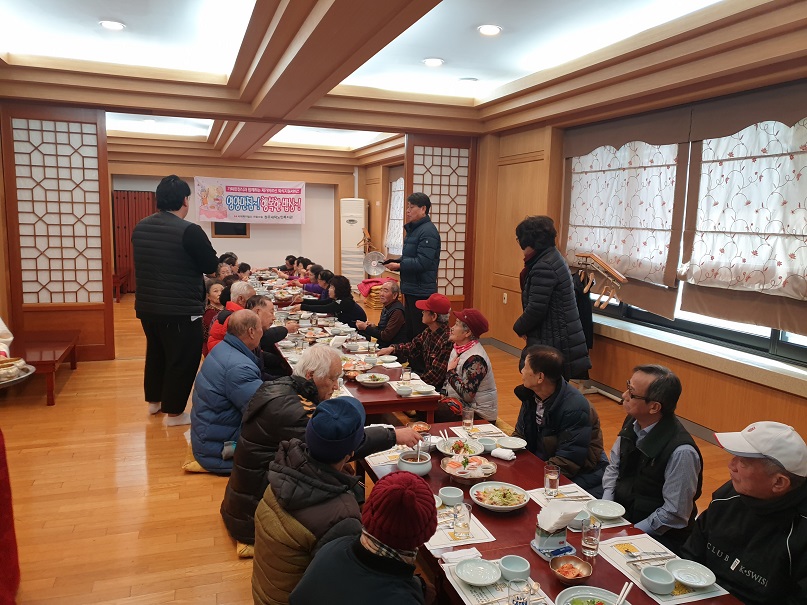 *일 시: 2020.01.16.(목) 11:30~13:00 *장 소: 가화한정식 *대 상: 재가어르신 33명 *내 용: 1월 재가 어르신 대상으로 외식지원 *후 원: 가화한정식 *담당자: 지역복지팀 정상혁 사회복지사 |