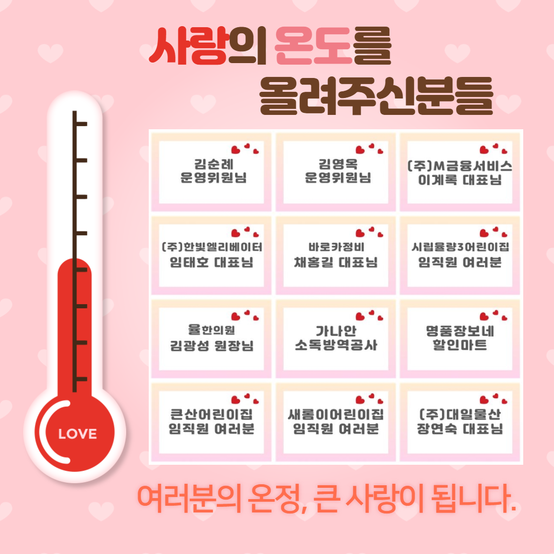 지난 3일부터 시작된 이웃 도와 겨울 온도 높이기에 많은 분들이 참여해 주셨습니다. 여러분들의 온정의 손길에 감사드리며, 어르신들에게 따뜻한 온기를 고스란히 전하겠습니다. 집중모금 기간은 12월 31일까지 이어지며, 새해 첫날부터 온라인 바자회를 진행할 예정이니 많은 관심 부탁드립니다.