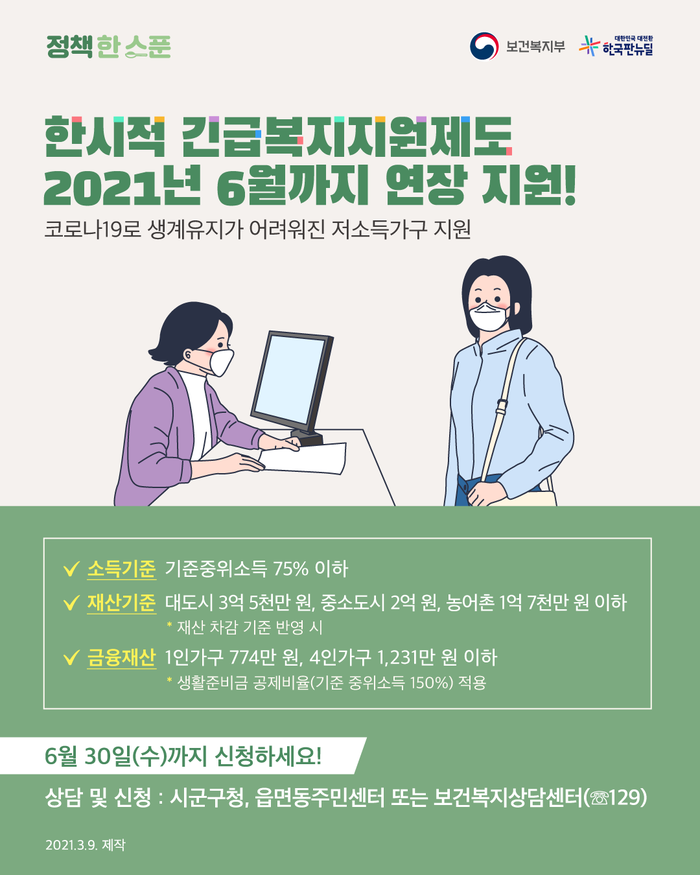 | [3월 복지정보] 한시적 긴급복지지원제도 연장 지원 안내 | |||