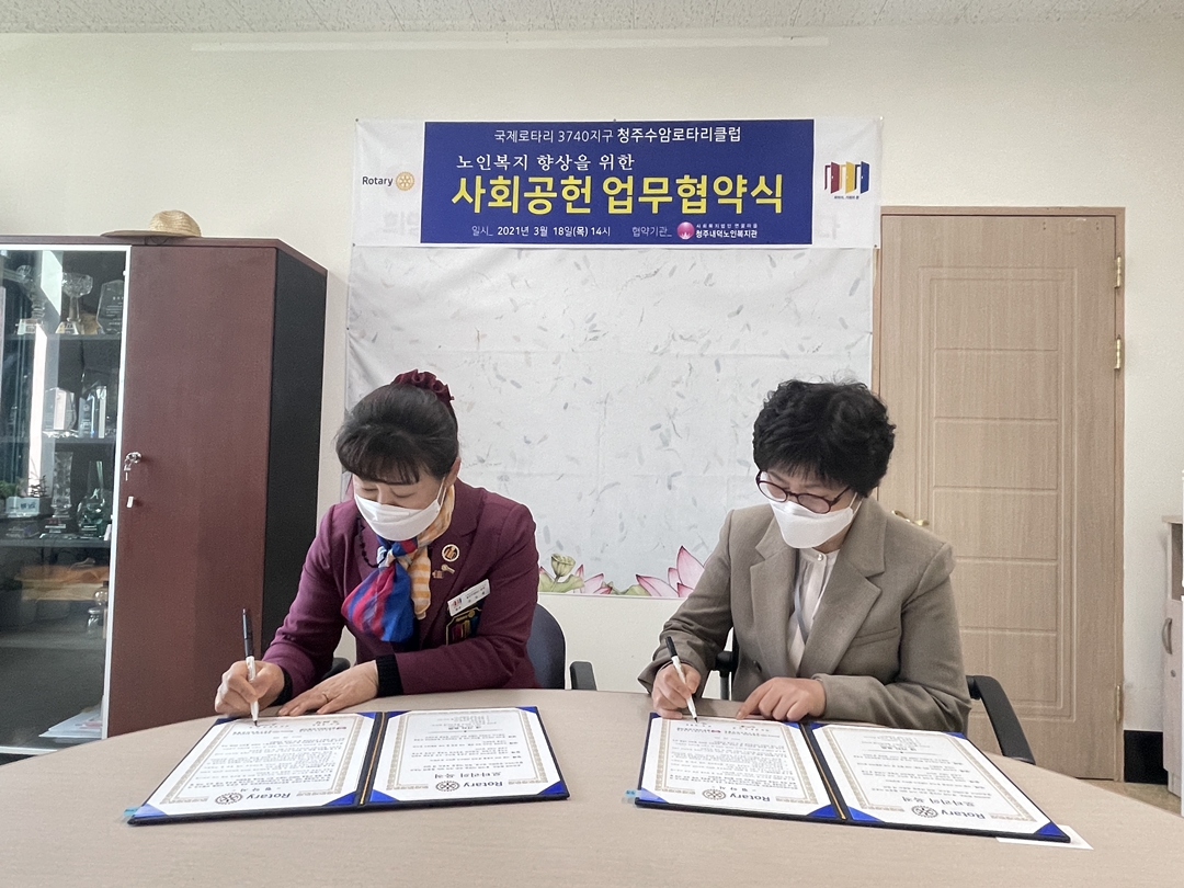 앞으로 지역 어르신들이 멋진 어른으로 살아가실 수 있도록 돕는 데 두 기관이 손잡고 노력하겠습니다 기쁜 마음으로 동행하기로 해주신 청주수암로타리클럽에 감사드립니다~
