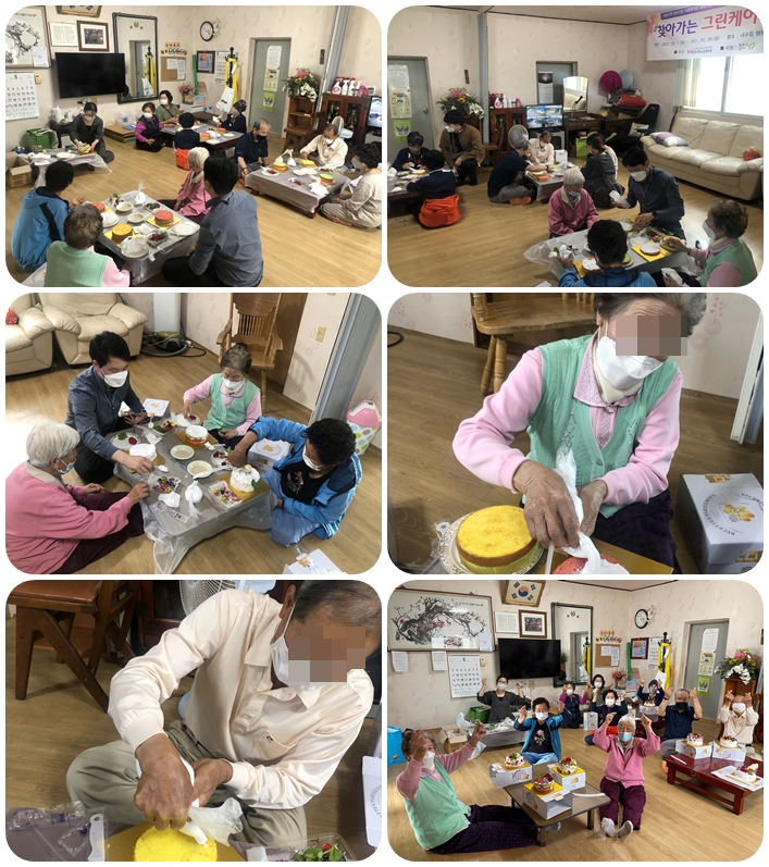 저희 복지관에서는 금일 14:00~16:00까지 내수읍에 위치한 형동1리 경로당에서 "찾아가는 그린케어교육" 4회기를 실시하였습니다~! 경로당 이용어르신 총 10명이 참여하여 원예교육(꽃케익만들기)으로 진행되었으며, 식용꽃을 활용한 케익만들기 활동으로 진행되었습니다~! 참여하신 어르신 모두 즐거워 하시며 프로그램을 마무리 할 수 있었습니다~! 그린케어교육은 오늘 4회기로 마무리되었습니다. 금번 교육에 참여하신 어르신들과 지원해 주신 원예활동강사님들께 감사드립니다. ^^ 앞으로도 농촌지역 어르신들의 건강과 행복을 위해 청주내덕노인복지관은 농촌지역을 꾸준히 찾아가 어르신들에게 힘이 되도록 노력하겠습니다~! ※경로당 프로그램 진행을 위해 사전 참여자분들의 발열체크 및 마스크 착용여부 확인하면서 방역수칙을 준수하여 프로그램을 진행하였습니다~!