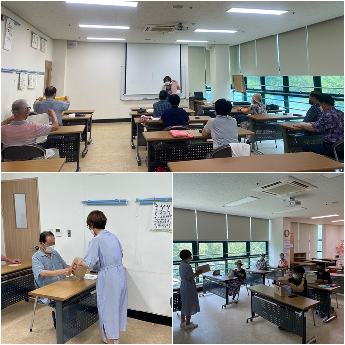 슬기로운 부부생활 남성 노인 정리수납 교실이 2021.07.09.~08.06. 매주 금요일 10:00~12:00 복지관 2층 으뜸방에서 진행이 되었습니다. 냉장고 정리수납, 의류 정리법, 천연세제를 이용한 냉장고 정리 등 다양한 방법의 정리수납 방법을 교육 받았습니다. 여성어르신들의 정리수납 교실에 대한 참여욕구도 높아 같이 진행하게 되었는데요. 앞으로 배운 정리수납법을 가정에서 활용하여 깔끔히 정돈된 모습으로 탈바꿈하는 모습을 기대하게 되었습니다! 남은 일정을 통해 배우자에게 더욱 사랑받을 수 있는 활동들로 찾아뵙도록 하겠습니다.