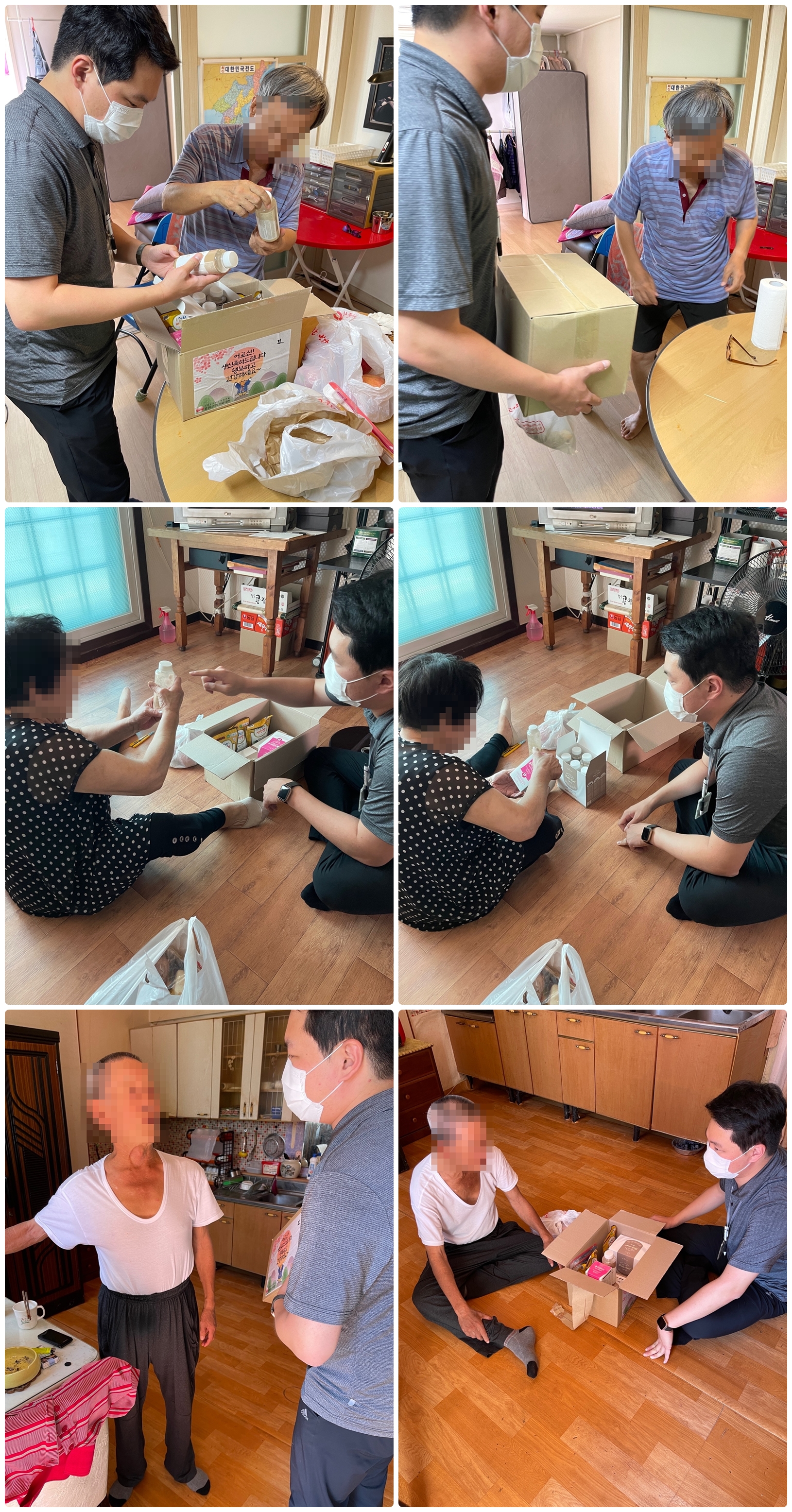 청주내덕노인복지관은 3분기 생신을 맞이하신 어르신들을 직접 찾아뵙고 선물을 전달하고, 어르신들의 정서지원을 실시하였습니다. 이번 3분기 생신선물은 어르신들의 비타민과 피부탄력을 위한 건강기능식품, 백미, 선식으로 이루어졌습니다! 어르신 생신에 맞춰 방문해 드리지 못하는 점이 매번 아쉽지만, 이렇게 와주는 것 만으로도 감사하다는 어르신들의 말씀에 눈시울이 붉어집니다. "이거 먹고 건강해서 내년에도 선물 받아야지!"라고 말씀하시는 어르신도 계셨고, "생일잔치를 가야하는데 이 시국에는 좀 어렵지~"라고 말씀해주신 어르신도 계셨습니다. 어르신들의 건강과 행복한 삶을 위해 노력하는 청주내덕노인복지관이 되겠습니다. |