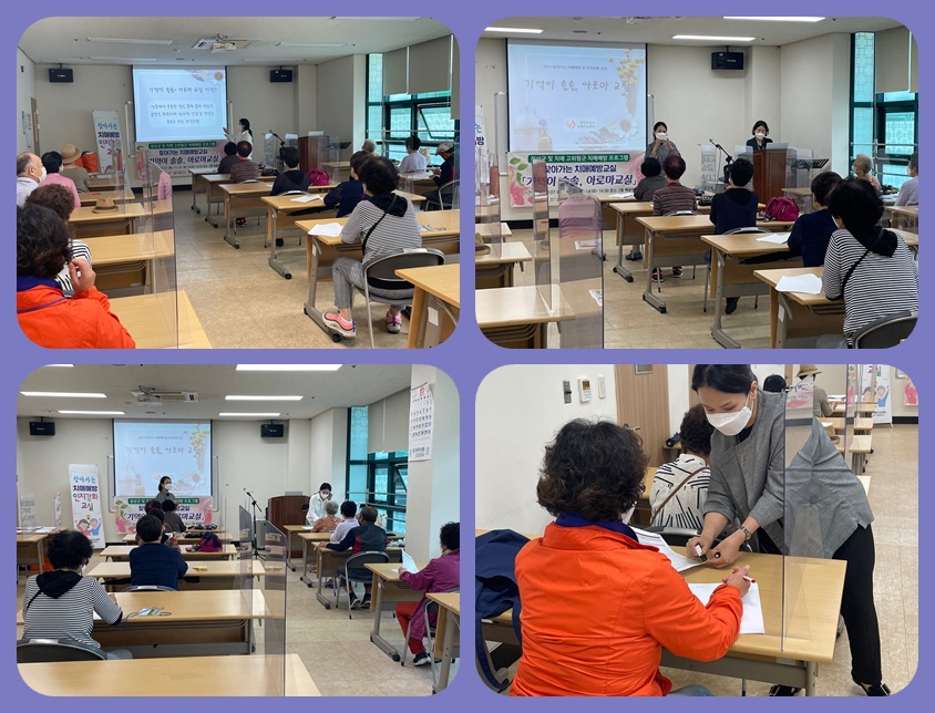 지난 10월7일(목) 복지관에서는 14:00~16:00, 2층 배움방에서 청원보건소 치매안심센터와 함께하는 치매예방교실 「기억이 솔솔, 아로마교실」1회기가 진행되었습니다!