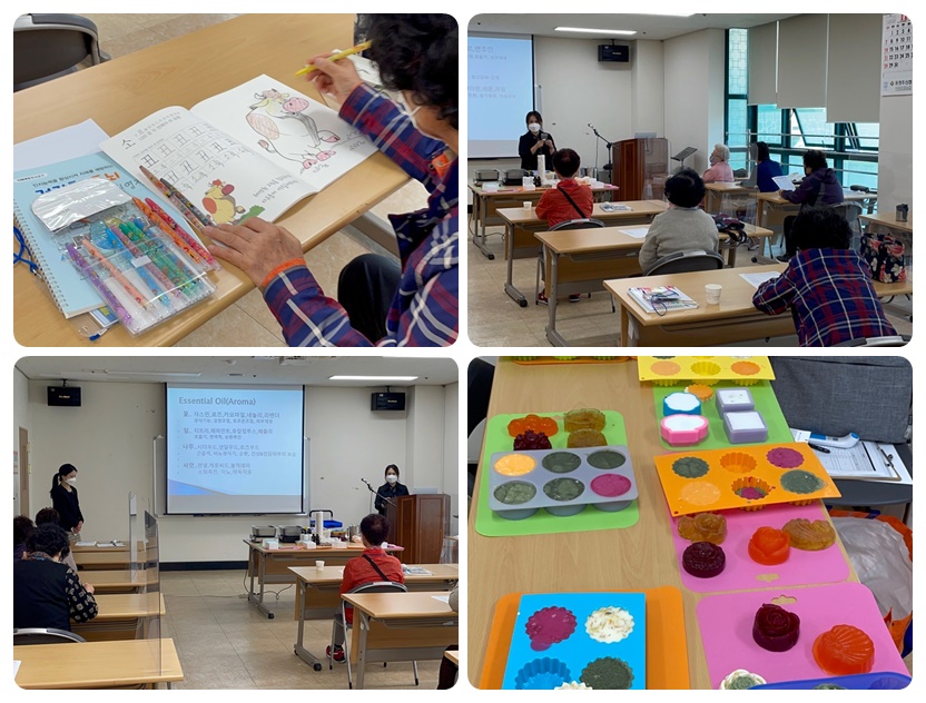 지난 11월4일(목) 저희 복지관에서는 14:00~16:00, 2층 배움방에서 청원보건소 치매안심센터와 함께하는 치매예방교실 「기억이 솔솔, 아로마교실」 5회기가 진행되었습니다! 인지훈련과 관련된 학습지를 풀어보고, 아로마오일로 천연비누 만들기를 실시하였습니다.