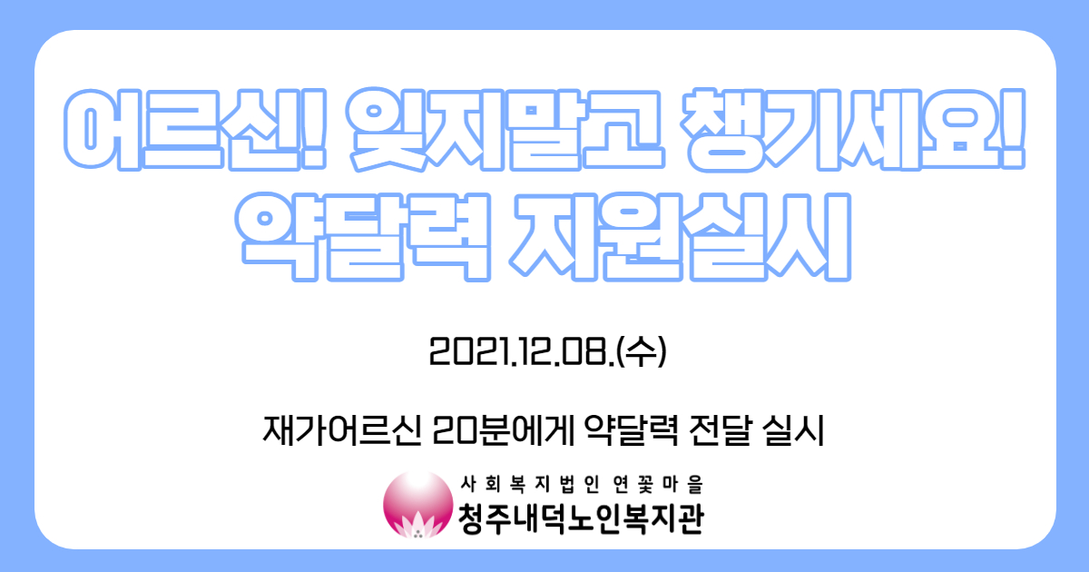 청주내덕노인복지관에서는 장기간 약을 복용하는 어르신들을 위해 약달력을 전달했습니다!