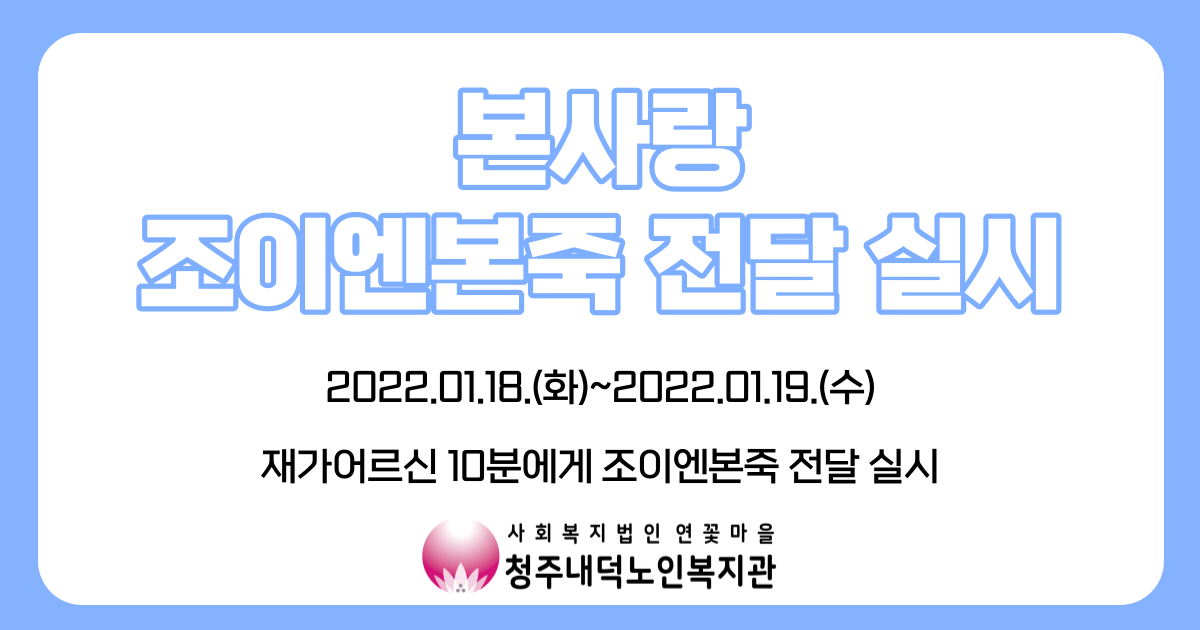 청주내덕노인복지관은 본사랑 영양죽 지원사업 공모를 통해 총 10상자의 영양죽을 지원받아, 어르신들에게 전달하였습니다.