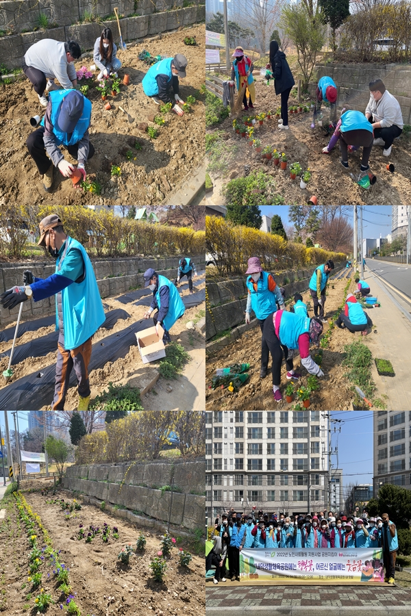 4월 5일 식목일을 맞이하여 청주내덕노인복지관에서는 4일 오전 9시부터 12시까지 해피천사 공원지킴이 참여자 40명과 함께 감자, 꽃 심기 행사를 진행하였습니다. 이날 진행된 행사는 매년 식목일마다 추진중인 연중 테마활동으로, 해피천사 공원지킴이 사업단의 공원수목관리에 대한 이해도와 활동 역량을 증진시키기 위한 특화교육이기도 합니다. 한쪽에는 수국, 장미, 팬지, 꽃잔디 등 다양한 묘종을 식재하여 지역 주민분들이 예쁜 꽃을 보고 기분 전환하실 수 있도록 공원지킴이 참여자분들이 열심히 화단을 조성하였고, 다른 쪽 텃밭에는 감자를 심어 저소득 독거노인 어르신들께 나눠드릴 예정입니다~!