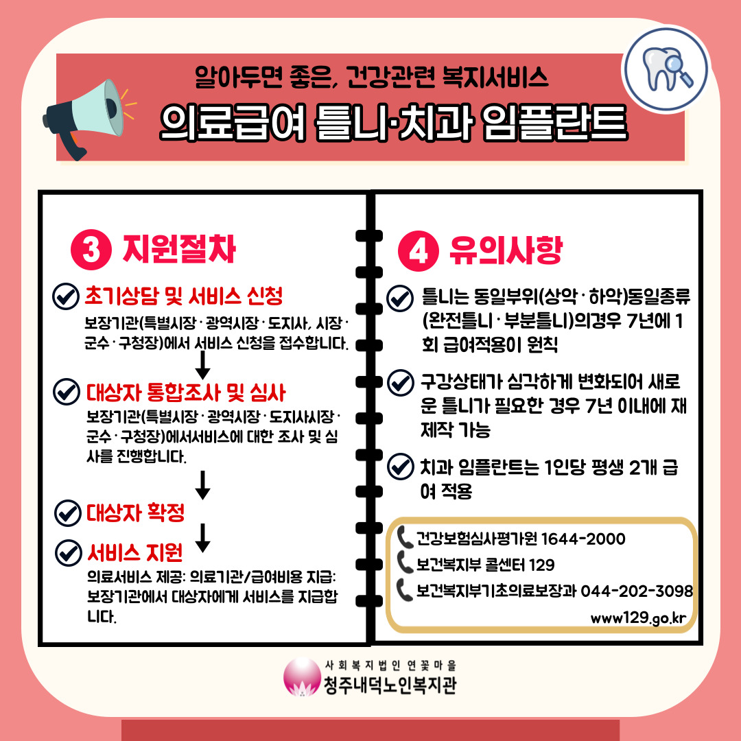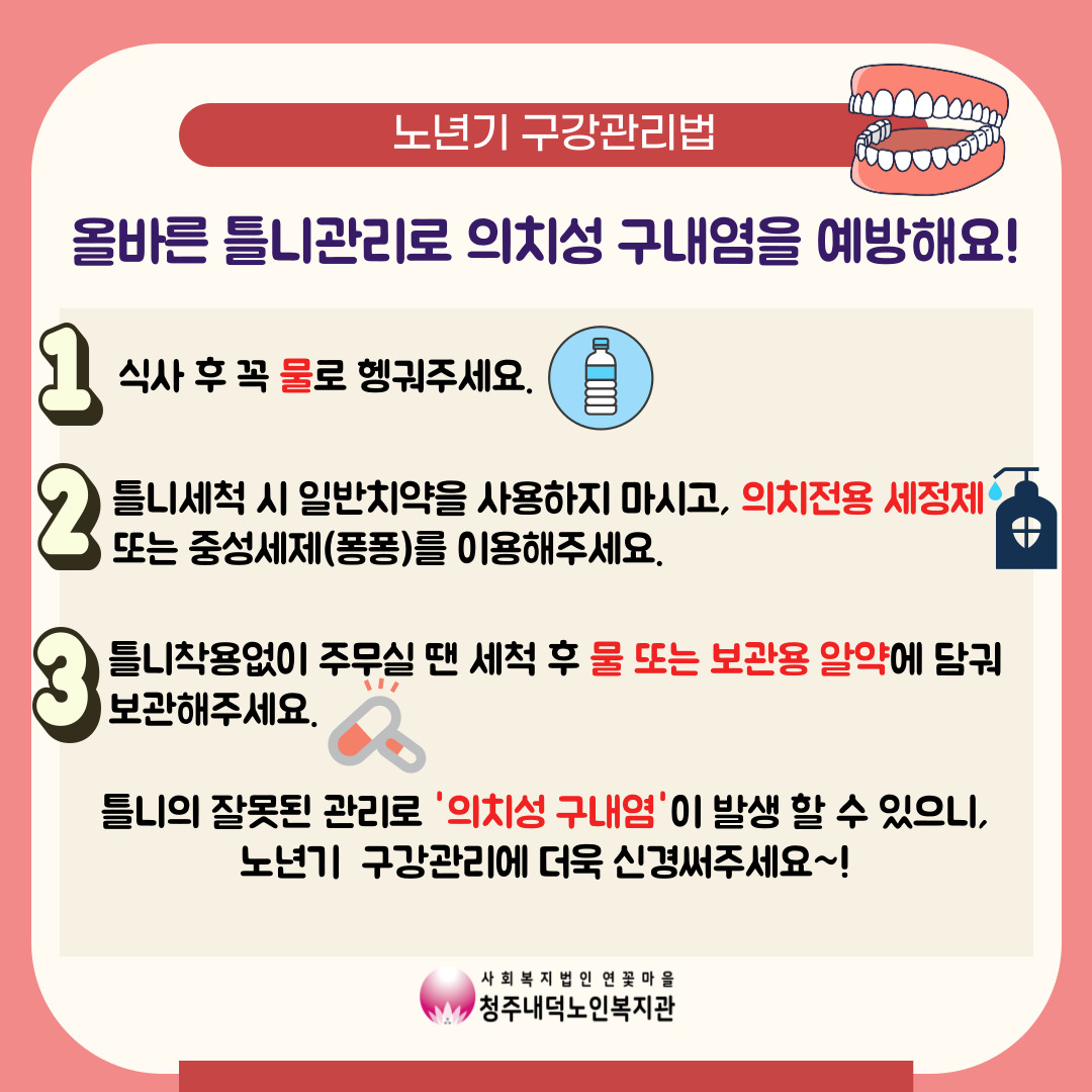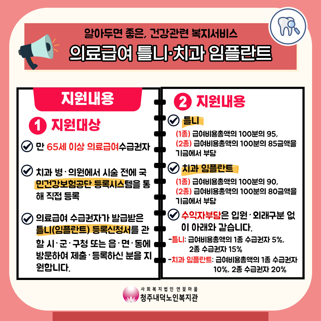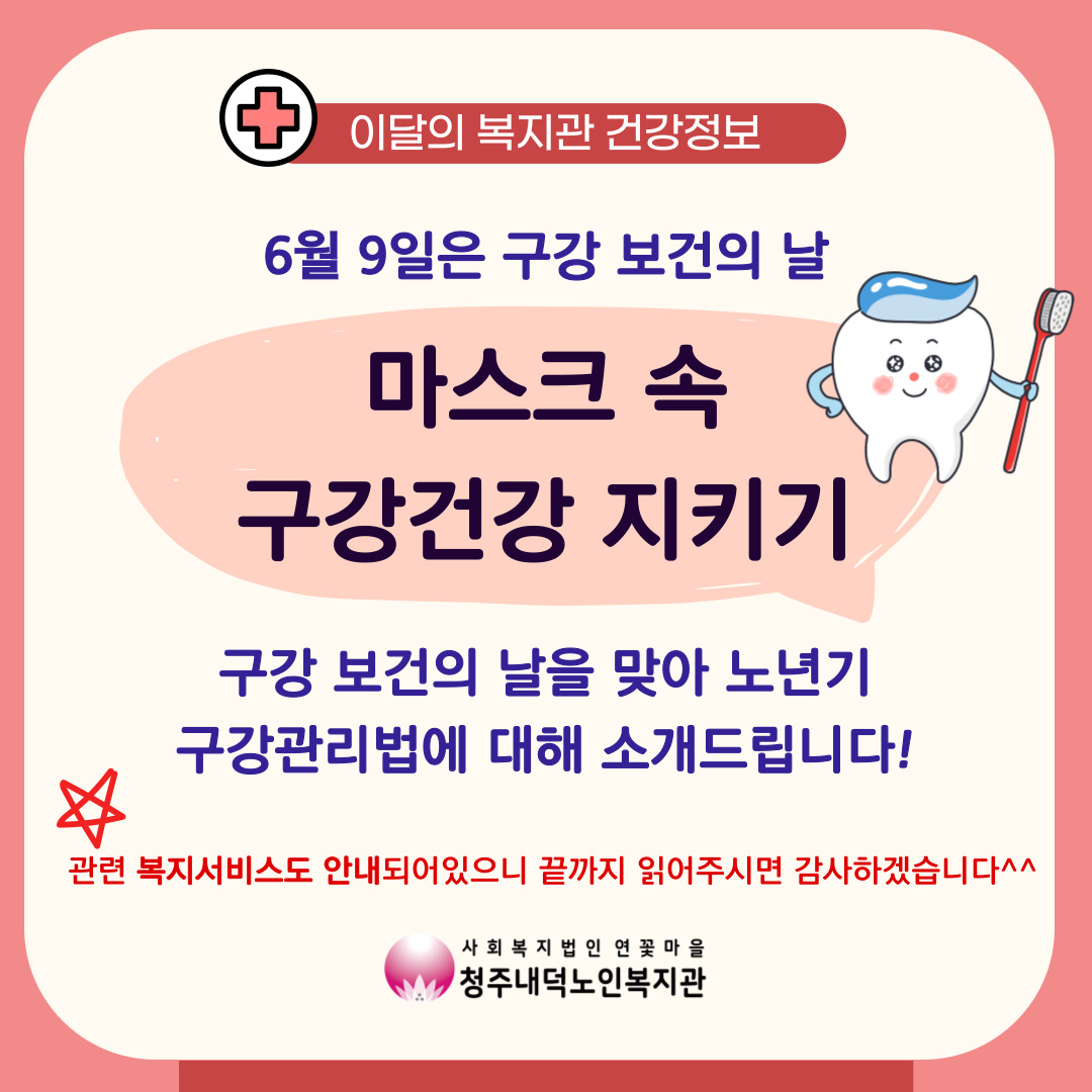 마스크 속 구강건강을 지켜보세요~! 또한, 틀니 및 치과 임플란트 비용 지원 복지서비스에 대한 안내도 있으니 꼭 끝까지 읽어주시기 바랍니다^^