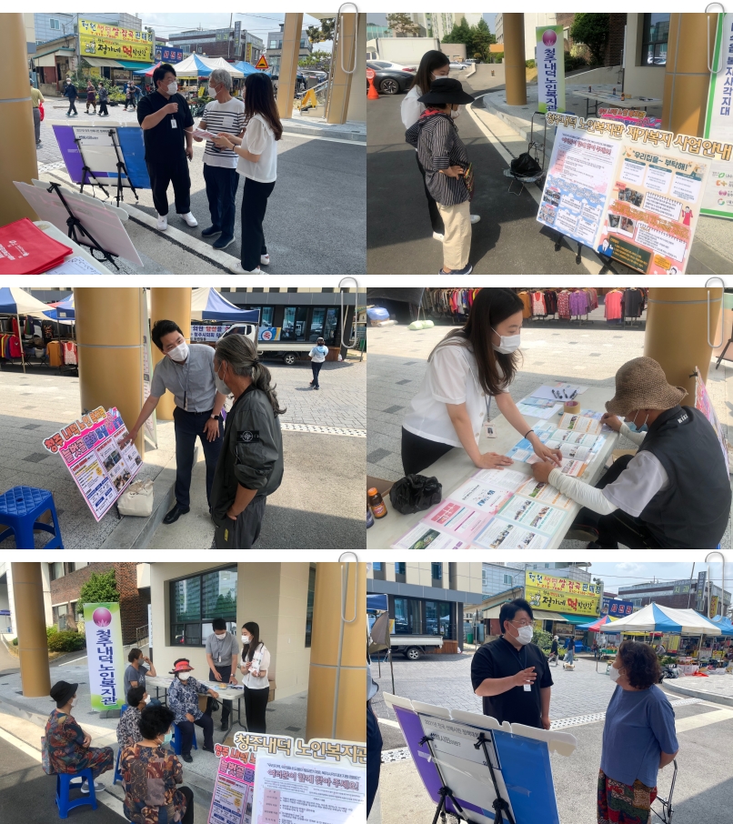 저희복지관에서는 금일 오전 10:00~12:00 까지 내수읍 장터에서 6월 찾아가는 복지상담소를 운영하였습니다~! 이번 복지상담소는 내수읍행정복지센터와 내수읍 모해센터 및 장터에서 진행되었습니다~! 내수읍 온정이음프로젝트 일환으로 진행되었으며, 많은 지역주민분들에게 복지관 이용안내 및 프로그램 소개와 재가복지서비스 안내, 취약계층 발굴 안내 등을 진행하였습니다~! 상반기는 이번달을 마지막으로 프로그램이 진행되었으며, 7월~8월 휴식기를 갖고 9월부터 다시 장날에 맞춰 찾아가는 복지상담소가 진행 될 예정입니다~! 많은 관심 부탁드립니다!! ^^