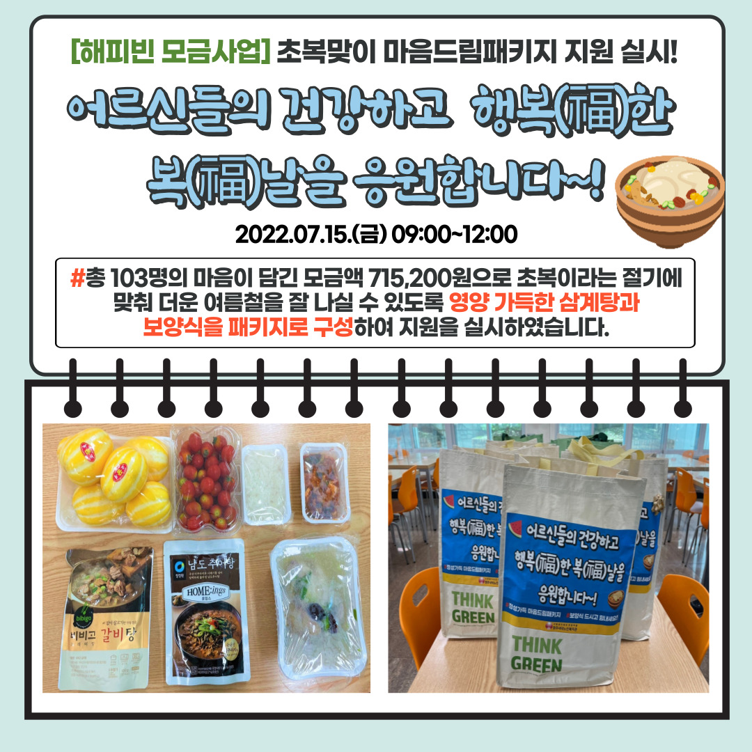 | [해피빈 모금사업] 초복 마음드림패키지 지원 실시! | |||
