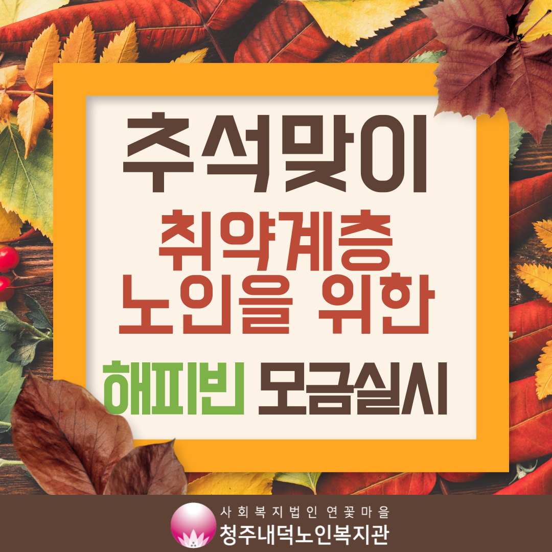 청주내덕노인복지관에서는 추석을 맞이하여 취약계층 어르신에게 "마음드림패키지"를 전달하기 위한 모금활동을 실시합니다! 네이버 해피빈을 통해 모금이 진행되며, 모금된 전액은 취약계층 어르신들에게 "마음드림패키지"를 전달하기 위해 사용됩니다. 네이버에 청주내덕노인복지관을 검색하거나, 아래 링크를 통해 들어가시면 됩니다! 어르신들의 얼굴을 환하게 밝혀주는 보름달이 되어 어르신들의 환한 미소를 볼 수 있도록 도와주세요!