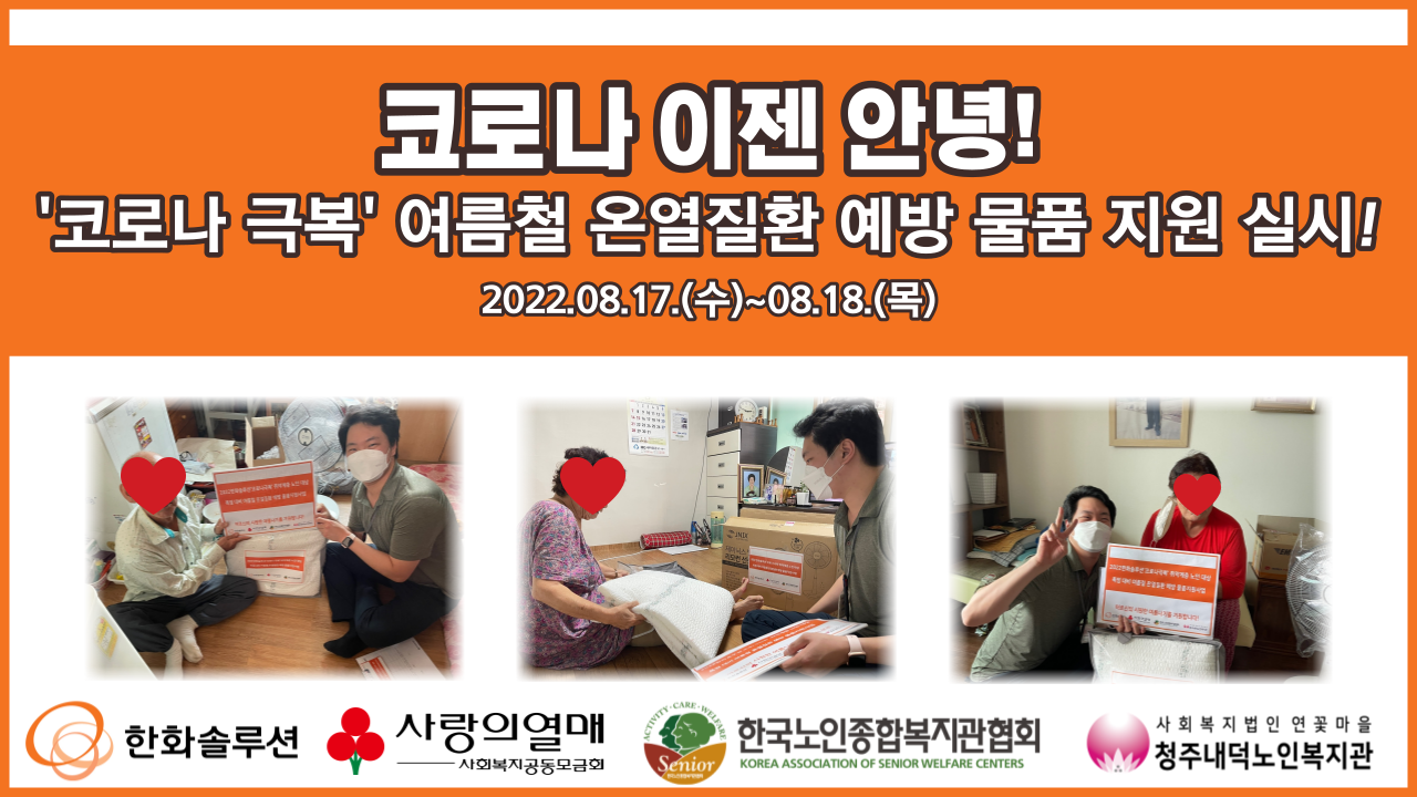 | 한국노인종합복지관협회 '한화솔루션과 함께하는 코로나 극복! 온열질환 예방 물품 지원사업 실시 | |||