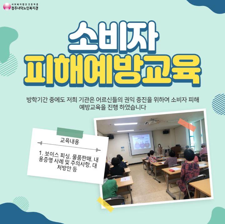8월 18일(목) 이용자 어르신을 위한 소비자피해예방교육을 실시 하였습니다