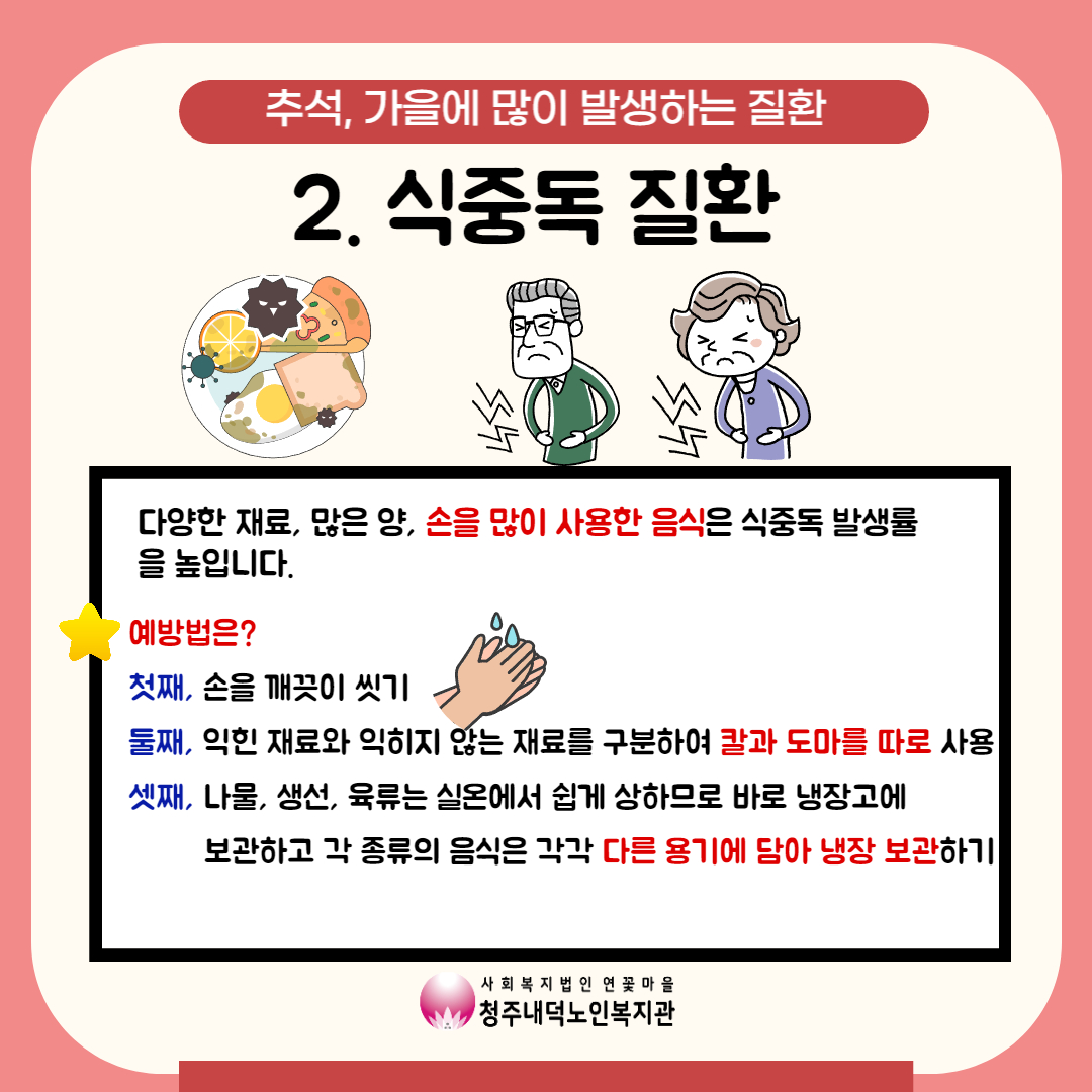 이와 같은 날씨에는 면역력과 질병에 노출되기 쉽고, 가을철 노년기에 쉽게 발생할 수 있는 질병에 대해 알고 주의를 해야 합니다. 오늘 건강소식을 통해 가을철 노년기 질환과 예방법을 알아보아요~!