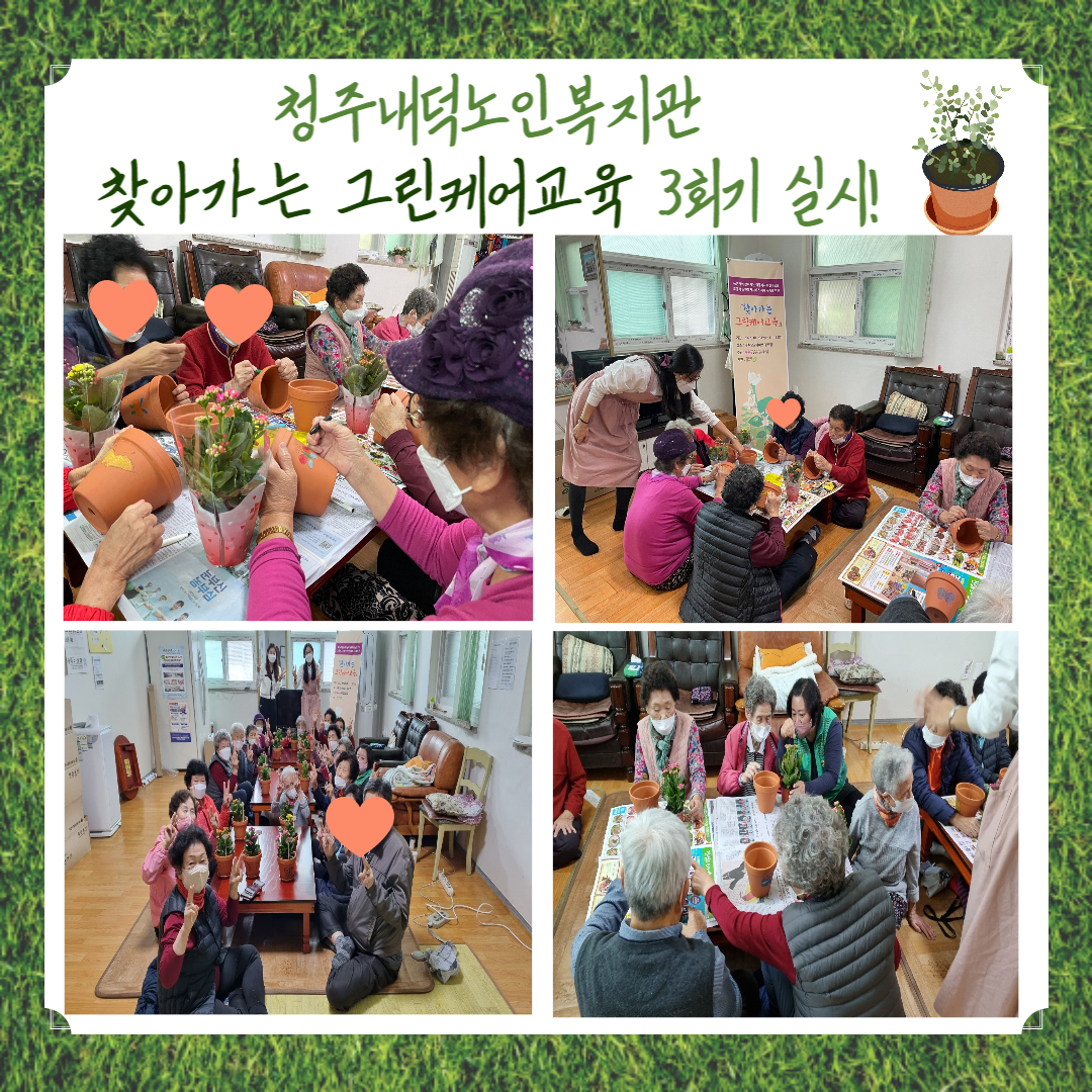 저희 복지관에서는 금일 오후 14:00~15:00까지 내수읍 삼일아파트 경로당에서 찾아가는 그린케어교육을 실시하였습니다~!