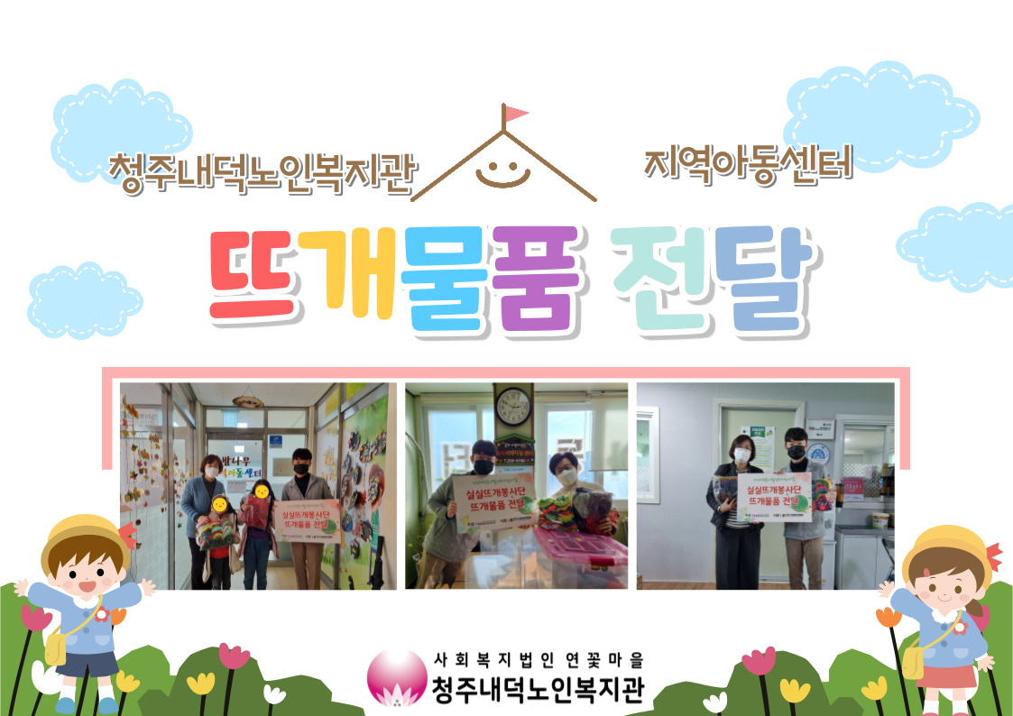 저희 복지관에서는 12월 20일(화) 14:00~15:00, 노인자원봉사활성화지원사업 '실실뜨개봉사단'이 직접 만든 뜨개물품을 청주시 청원구 소재 3개의 지역아동센터를 이용하는 아동들에게 수세미 402개, 샤워타올 11개, 모자 목도리세트 14세트, 목도리 42개, 핸드폰 가방 42개 총 511개를 지원하였습니다.