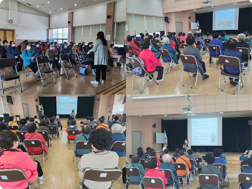 청주내덕노인복지관에서는 2023년 노인사회활동 지원사업 보육시설도우미 활동교육을 3월 29일(수) 10:00~12:00까지 복지관 내 1층 강당에서 진행했습니다! 아인 성, 인권연구소 성혜원 소장님께서 기관을 방문하여 노인인권과 권익옹호의 필요성에 대해 교육을 열심히 진행해주셨습니다! 차별금지, 남성과 여성의 평등, 인권 감수성, 성인지 감수성 등 다양한 주제의 내용들을 배울 수 있는 유익한 시간이었습니다!
