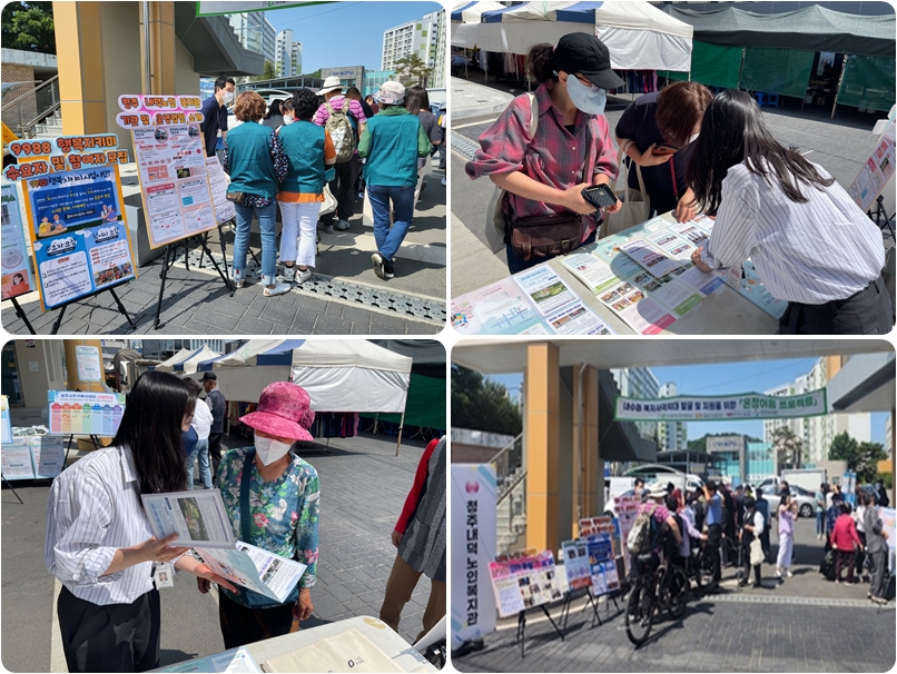 지난 5/25(목) 청주내덕노인복지관에서는 10:00~12:00까지 내수 모해센터에서 이동노인복지관 5월 찾아가는 복지상담소 프로그램을 진행하였습니다. 복지사각지대 발굴 및 지원을 위한 온정이음 프로젝트의 일환으로 내수읍지역사회보장협의체, 청원보건소, 독거노인통합지원센터, 청주시주거복지센터, 목령종합사회복지관, 청원정신건강복지센터, 휴먼케어 등의 다양한 복지기관들과 함께 연계하여 각 기관별 사업 소개 및 복지 서비스에 대한 상담을 진행하기 위한 취지로 실시되었습니다. 앞으로도 청주내덕노인복지관에서는 청원구 농촌지역 어르신들의 복지 체감도 향상을 위해 매월 1회 내수읍 5일장이 열리는 날에 맞춰 직접 찾아가는 복지상담소 활동을 펼칠 예정입니다. 앞으로 많은 관심과 참여 부탁드리겠습니다~!