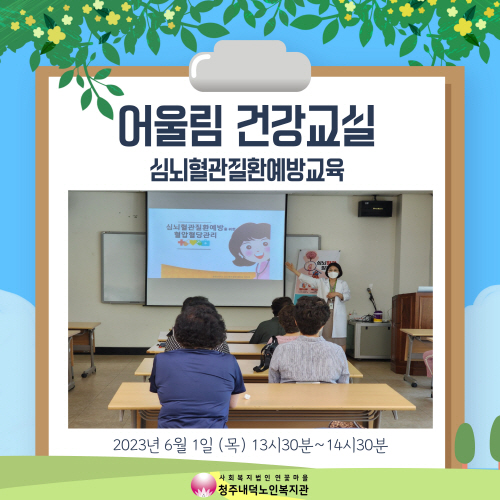 | 2023년 어울림 건강교실 3회기 – 심뇌혈관질환 예방교육 | |||