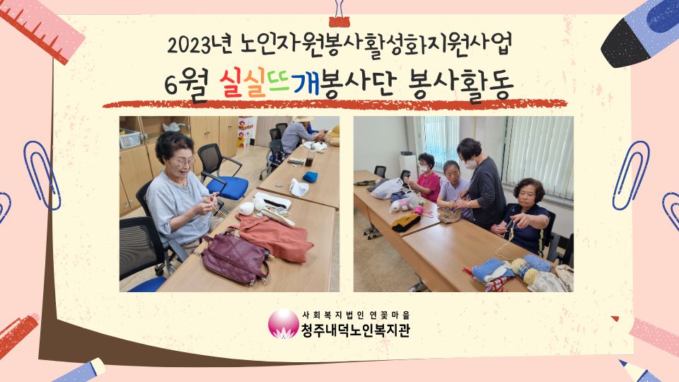 | 2023년 노인자원봉사활성화지원사업 실실뜨개봉사단 6월 봉사활동 | |||