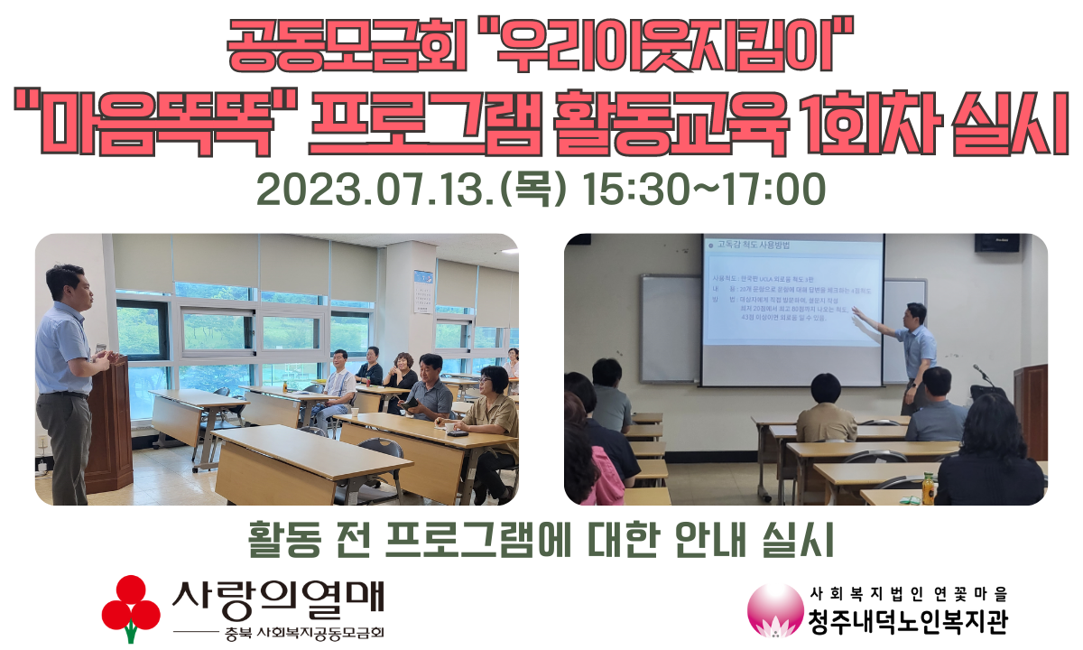 | 우리이웃지킴이 '마음똑똑' 활동교육 1회차 활동 교육 실시! | |||