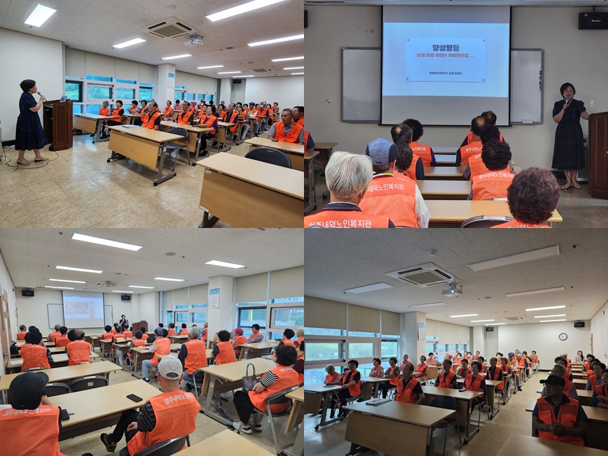 청주내덕노인복지관에서는 7월 14일 10시부터 12시, 복지관 2층 배움방에서 9988 행복지키미 사업단을 대상으로 양성평등 교육을 실시하였습니다! 성평등에 대해 알아가고 성역할에 따른 고정관념을 바꿔나가는 의미있는 시간이 되었습니다. 앞으로도 노인일자리 참여자들의 활동을 적극적으로 지원할 수 있는 청주내덕노인복지관이 될 수 있도록 노력하겠습니다~!