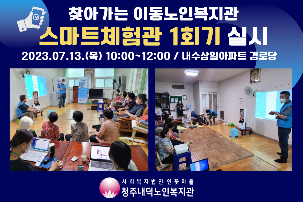앞으로도 청주내덕노인복지관은 찾아가는 이동노인복지관 스마트체험관 프로그램을 통해 청원구 읍면지역 어르신들의 스마트 기기 사용법 교육에 대한 욕구를 해소할 수 있도록 노력하겠습니다~!