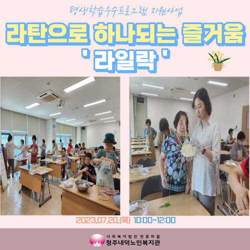 청주내덕노인복지관에서는 장마가 시작 된 7월에도 매주 목요일 10시부터 12시까지 라탄으로 즐거움을 불태우며 평생학습우수프로그램지원사업인 라탄으로 하나되는 즐거움 '라일락' 라탄 공예 프로그램이 진행되었습니다.