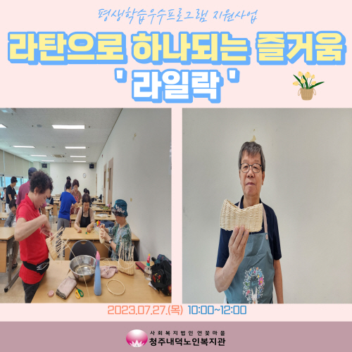 | 2023년 평생학습우수프로그램 라탄으로 하나되는 즐거움 - 7월 프로그램 진행 | |||