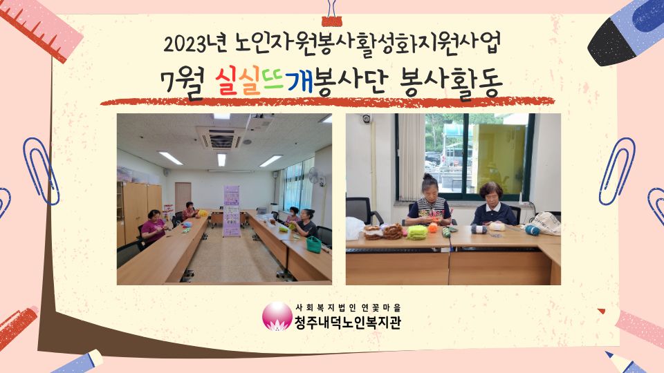 | 2023년 노인자원봉사활성화지원사업 실실뜨개봉사단 7월 봉사활동 | |||